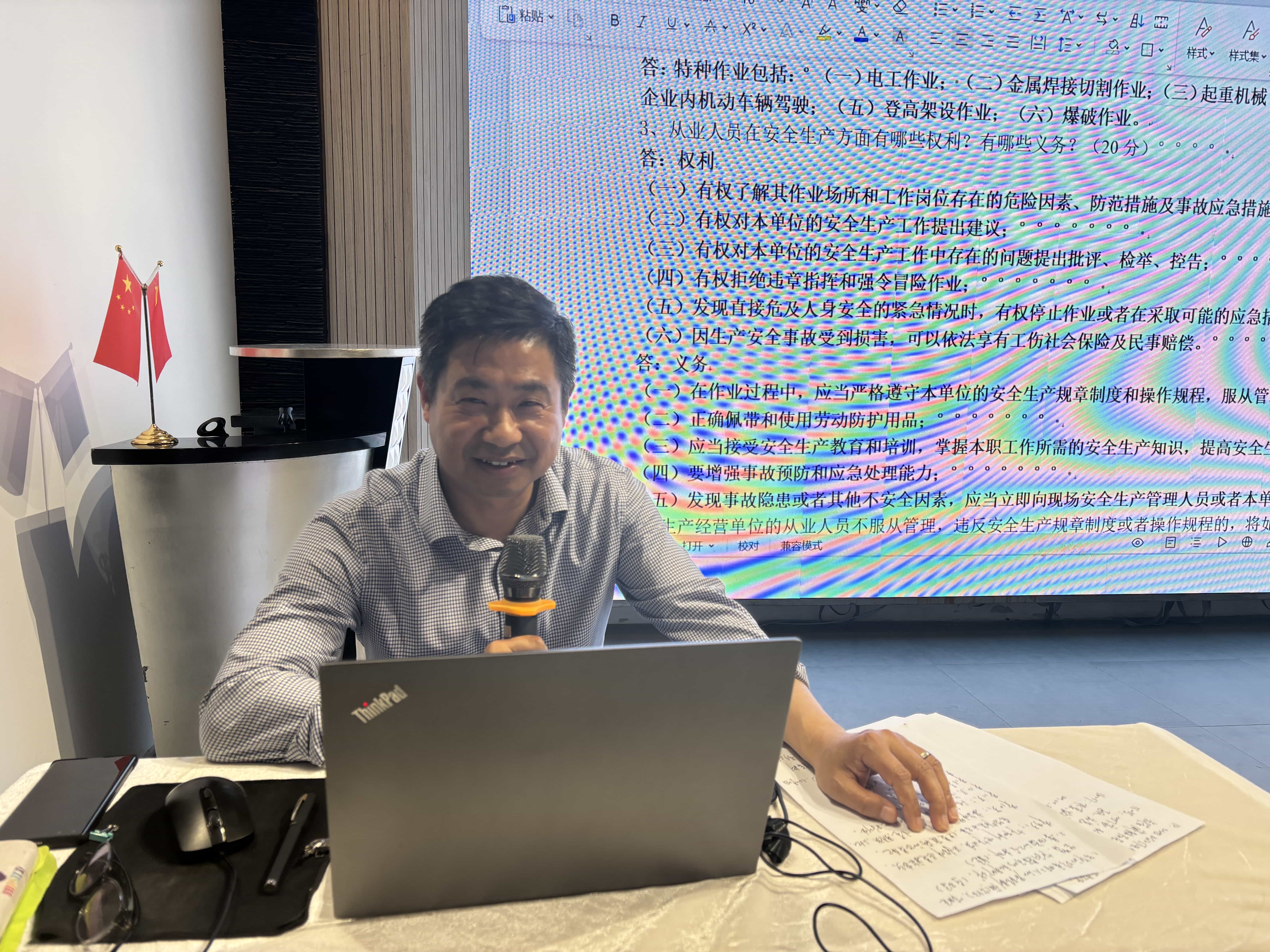 他强调,安全生产是企业发展的生命线,每位员工都必须牢固树立“安全第一”的理念,将安全责任落实到每一个环节、每一处细节。戴总通过生动的案例分析和互动提问,让参训人员深刻认识到规范操作的重要性,进一步强化了全员的安全责任意识。