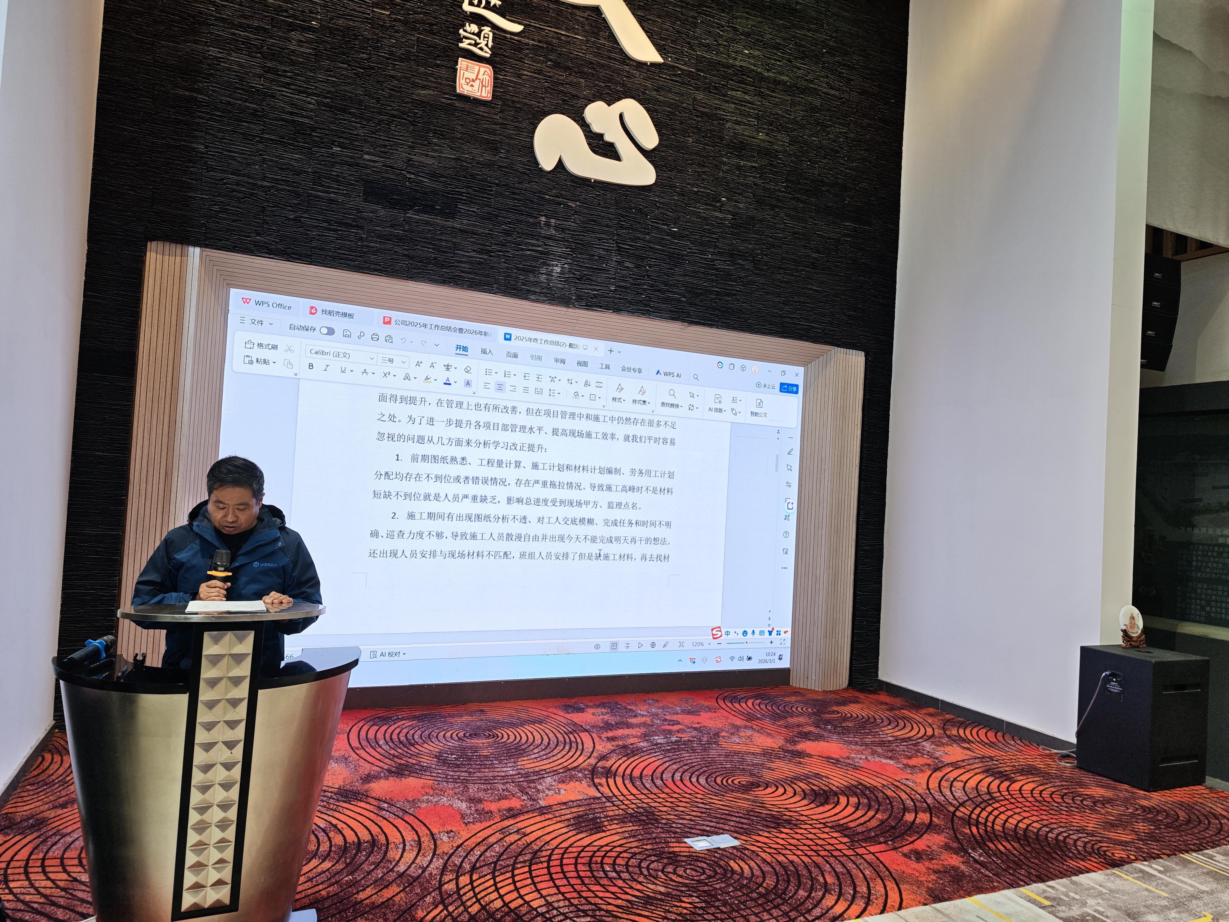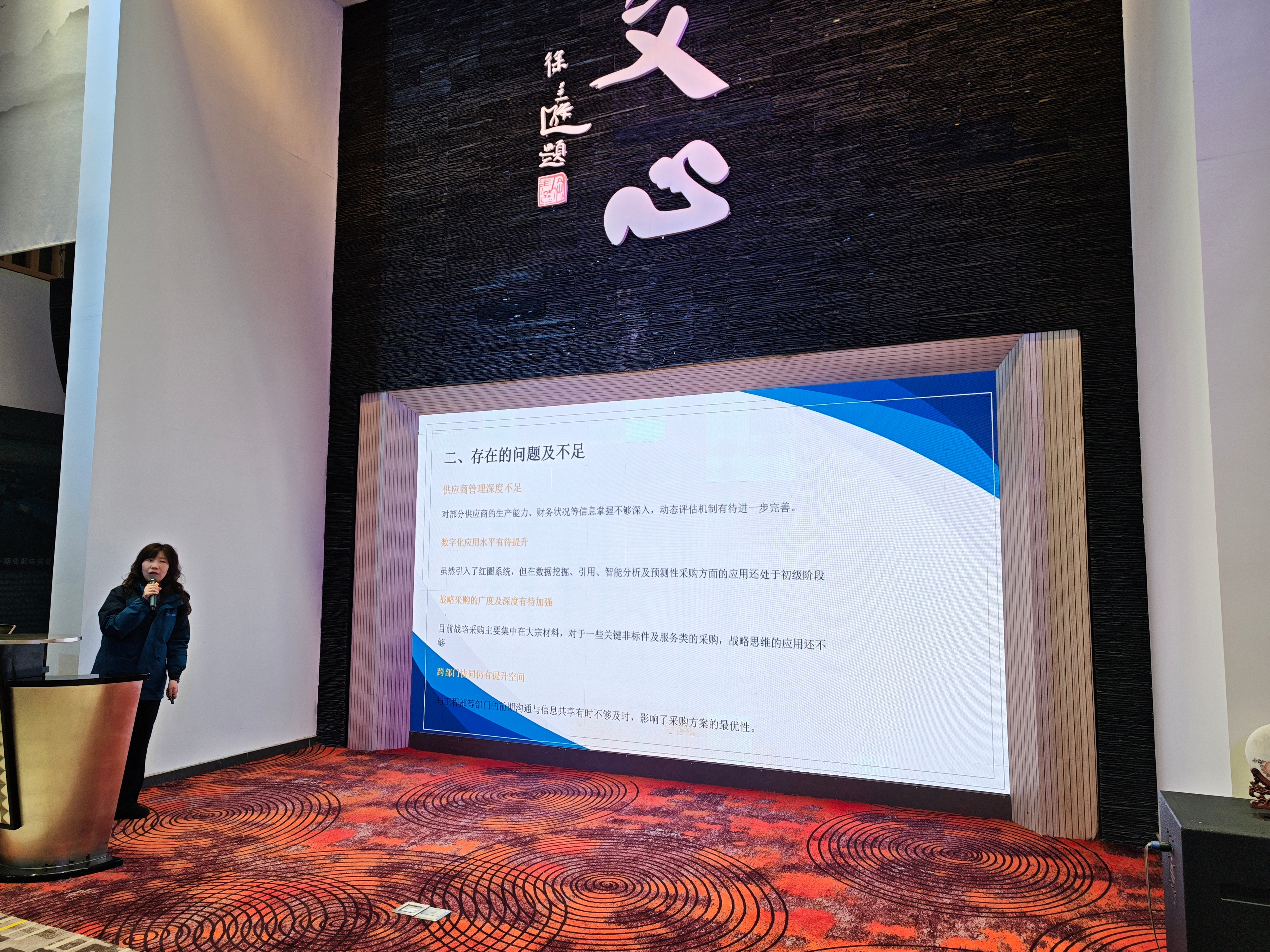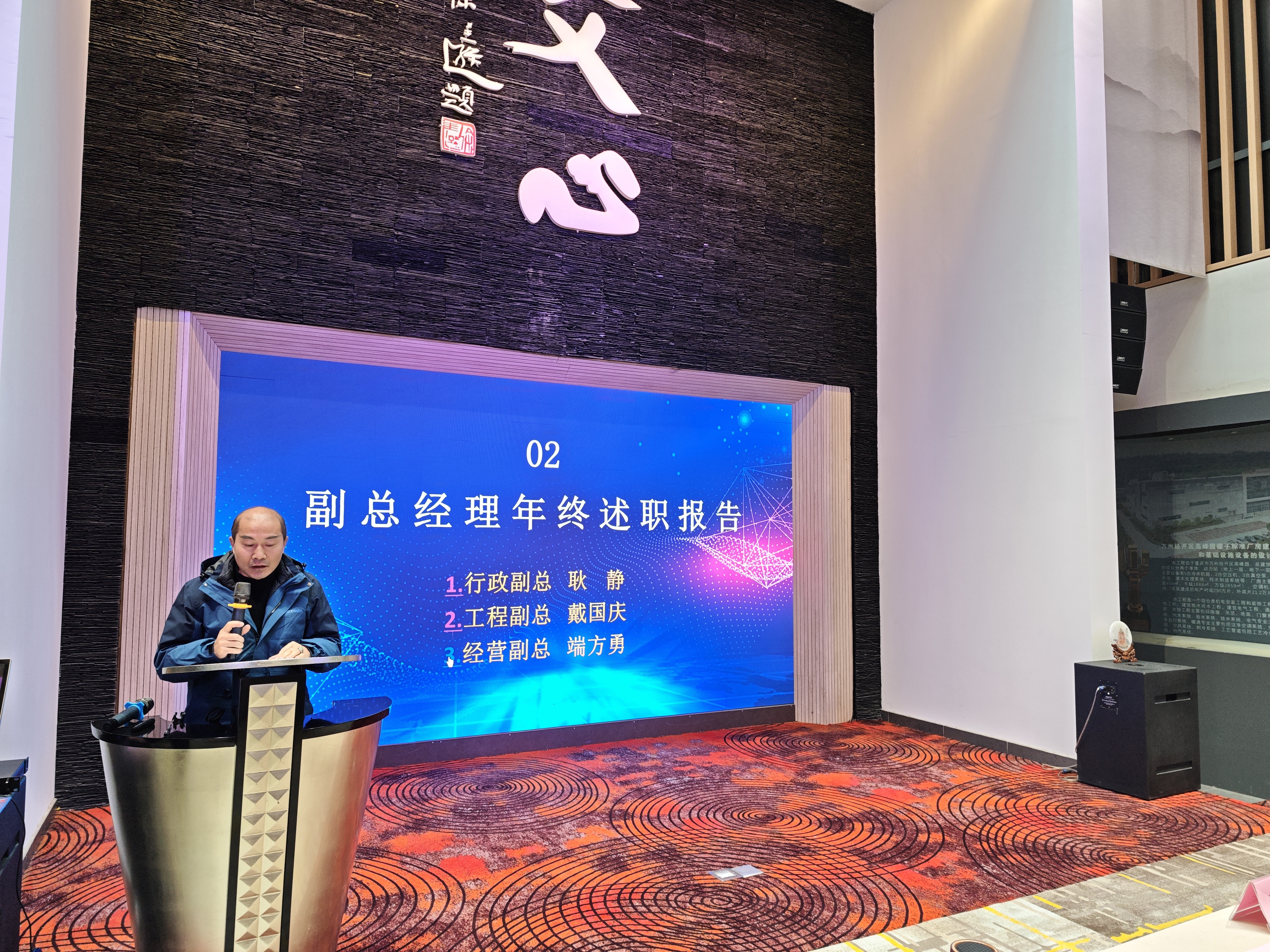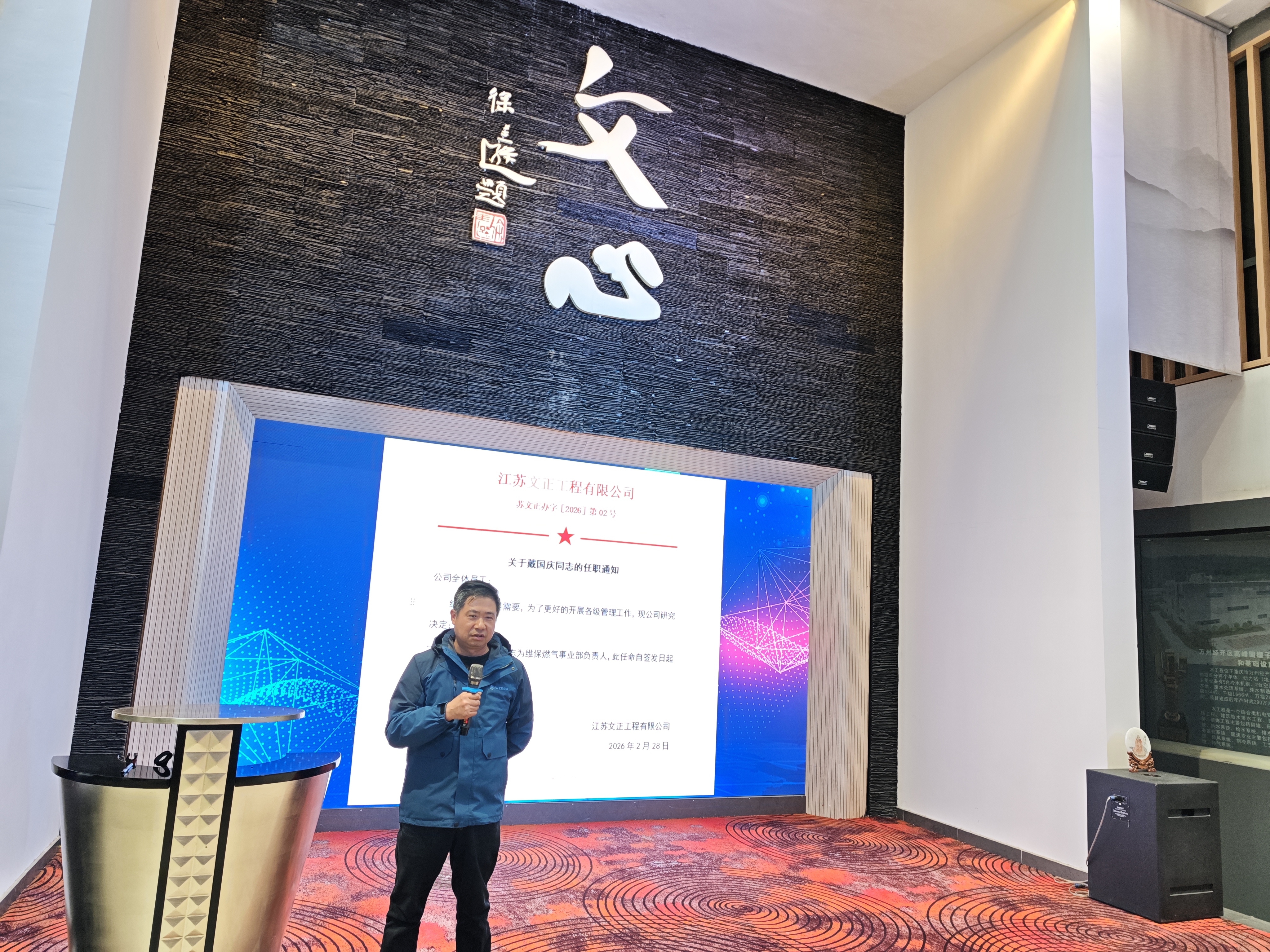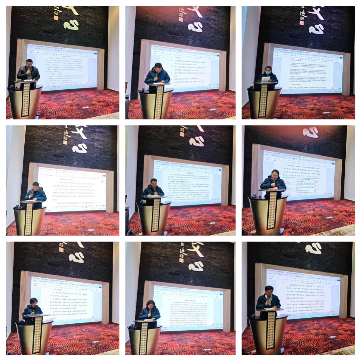 在第三项议程中,来自工程部、招投标部、市场部、行政部、采购部、财务部等多个部门的负责人及员工代表依次上台。从一线的奋斗故事到团队的协作精神,每一位发言人都用真诚的语言展现了文正人务实进取、团结拼搏的精神风貌。